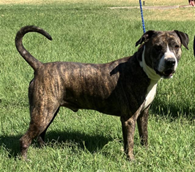 The shelter named me Spud. I am a 4 year old male black brindle Staffordshire Bull Terrier. I have been at the shelter since Thursday, June 5, 2025. Must provide proof of home ownership or landlord approval at the time of adoption.