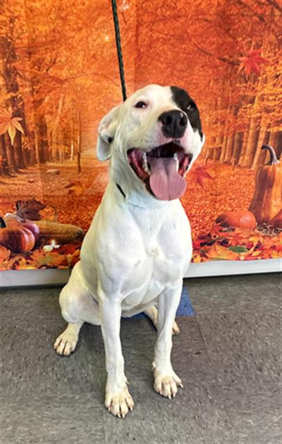 The shelter named me Levi. I am a 1 year 2 month old female white & black American Bulldog Mix. I have been at the shelter since Wednesday, September 17, 2025. Must provide proof of home ownership or landlord approval at the time of adoption.