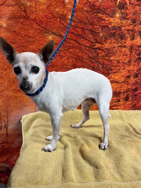 The shelter named me Flora. I am a 10 year old female white & tan Chihuahua - Smooth Coated. I have been at the shelter since Wednesday, November 12, 2025. Must provide proof of home ownership or landlord approval at the time of adoption.