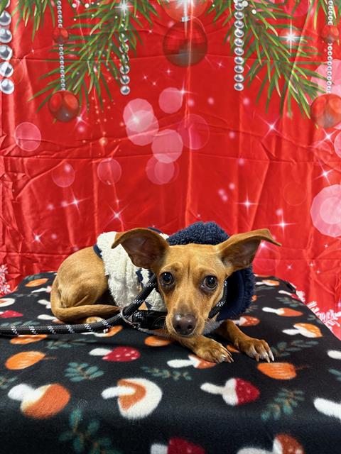 The shelter named me Pippi. I am a 1 year old female red Chihuahua - Smooth Coated. I have been at the shelter since Friday, December 5, 2025. Must provide proof of home ownership or landlord approval at the time of adoption.