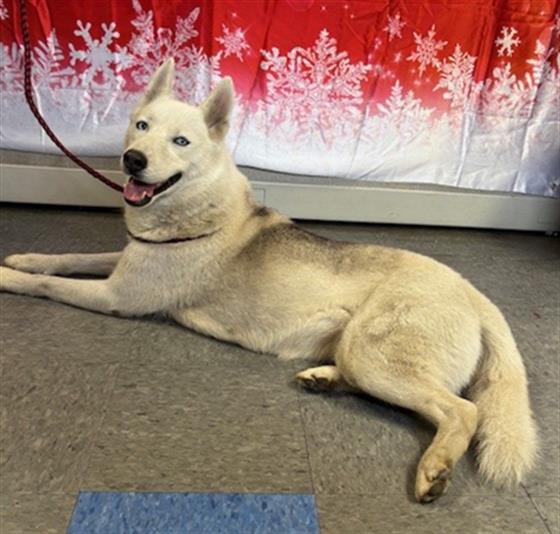 The shelter named me Aurora. I am a 1 year old female white & tan Siberian Husky Mix. I have been at the shelter since Thursday, December 4, 2025. Must provide proof of home ownership or landlord approval at the time of adoption.