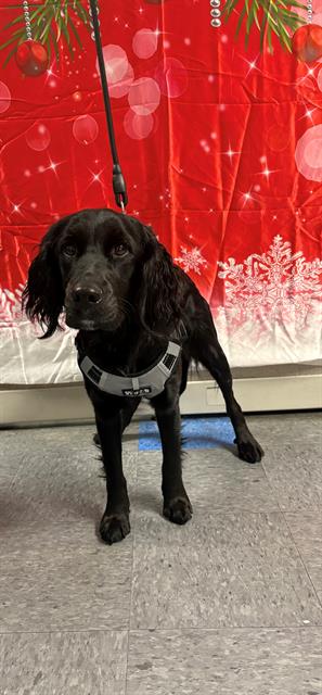 The shelter named me Gracie. I am a 1 year 6 month old female black & white English Springer Spaniel. I was found not wearing a collar on W Linwood/ S Tegner Rd. I have been at the shelter since Monday, December 8, 2025. I will be available for adoption on Thursday, December 18, 2025. Must provide proof of home ownership or landlord approval at the time of adoption.