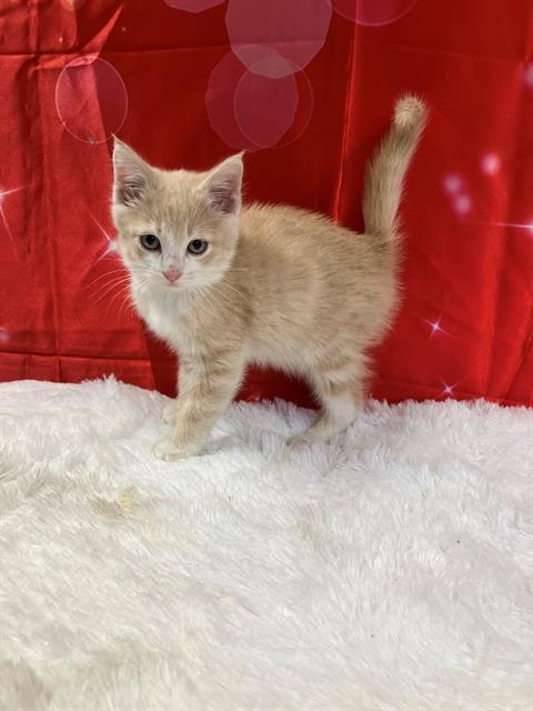 The shelter named me Copper. I am a 9 week old male cream & white Domestic Shorthair. I was found not wearing a collar on N Tegner Rd/Fulkerth Rd. I have been at the shelter since Thursday, December 11, 2025. I will be available for adoption on Thursday, December 18, 2025. Must provide proof of home ownership or landlord approval at the time of adoption.