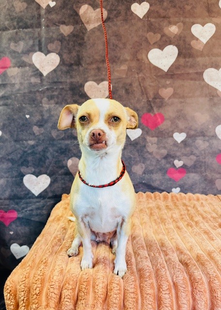 The shelter named me Churro. I am a 3 year old female tan & white Chihuahua - Smooth Coated. I have been at the shelter since Monday, February 2, 2026. Must provide proof of home ownership or landlord approval at the time of adoption.