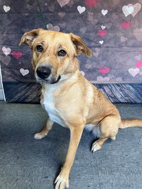 The shelter named me Whitney. I am a 1 year old female tan & white Pit Bull Terrier Mix. I have been at the shelter since Friday, January 30, 2026. Must provide proof of home ownership or landlord approval at the time of adoption.