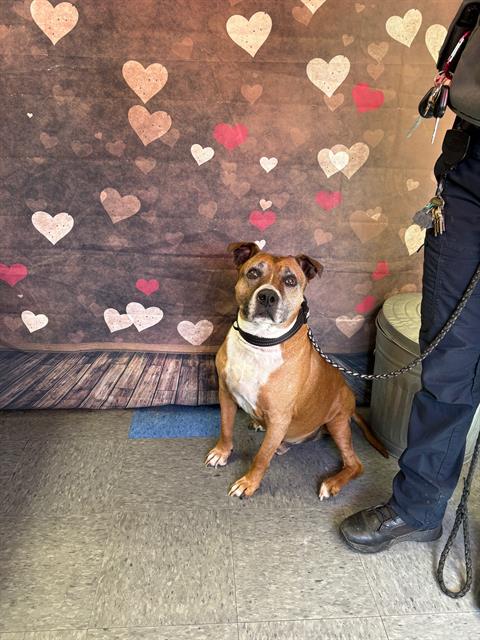 The shelter named me Sugar Muffin. I am a 8 year old spayed female tan & white Pit Bull Terrier. I have been at the shelter since Monday, February 9, 2026. Must provide proof of home ownership or landlord approval at the time of adoption.
